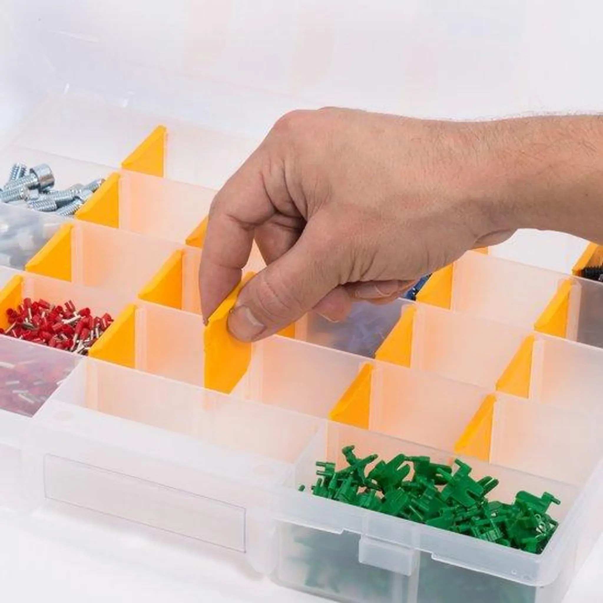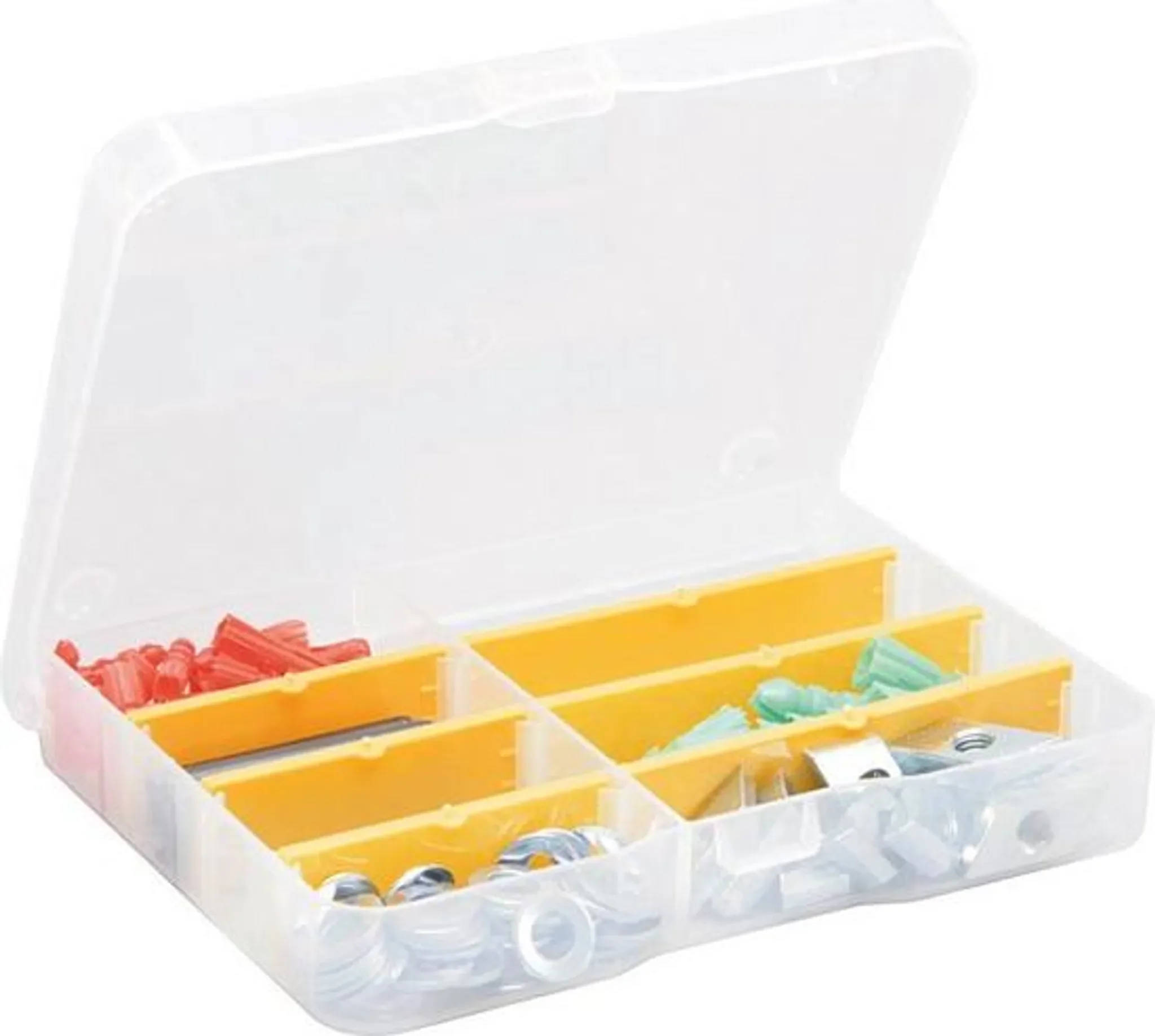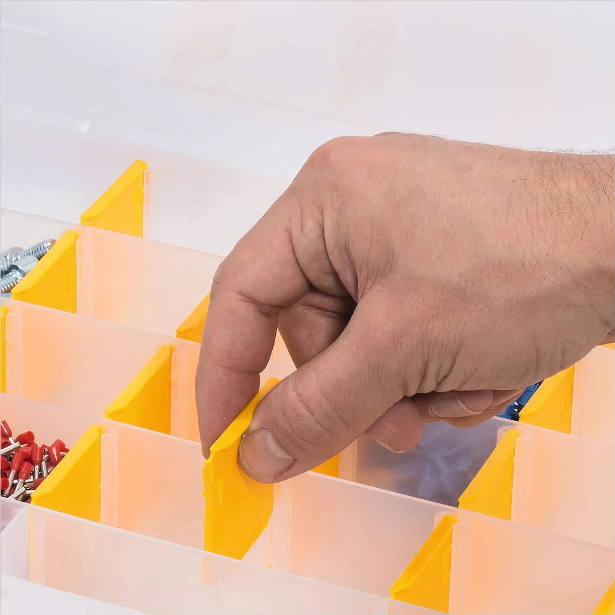 Das hochwertige Polypropylen-Material ist hochschlagfest und besonders langlebig – perfekt für den täglichen Einsatz in der Werkstatt, im Haushalt oder beim Hobby. Zwei selbstklebende Etiketten zur Beschriftung sind im Lieferumfang enthalten.