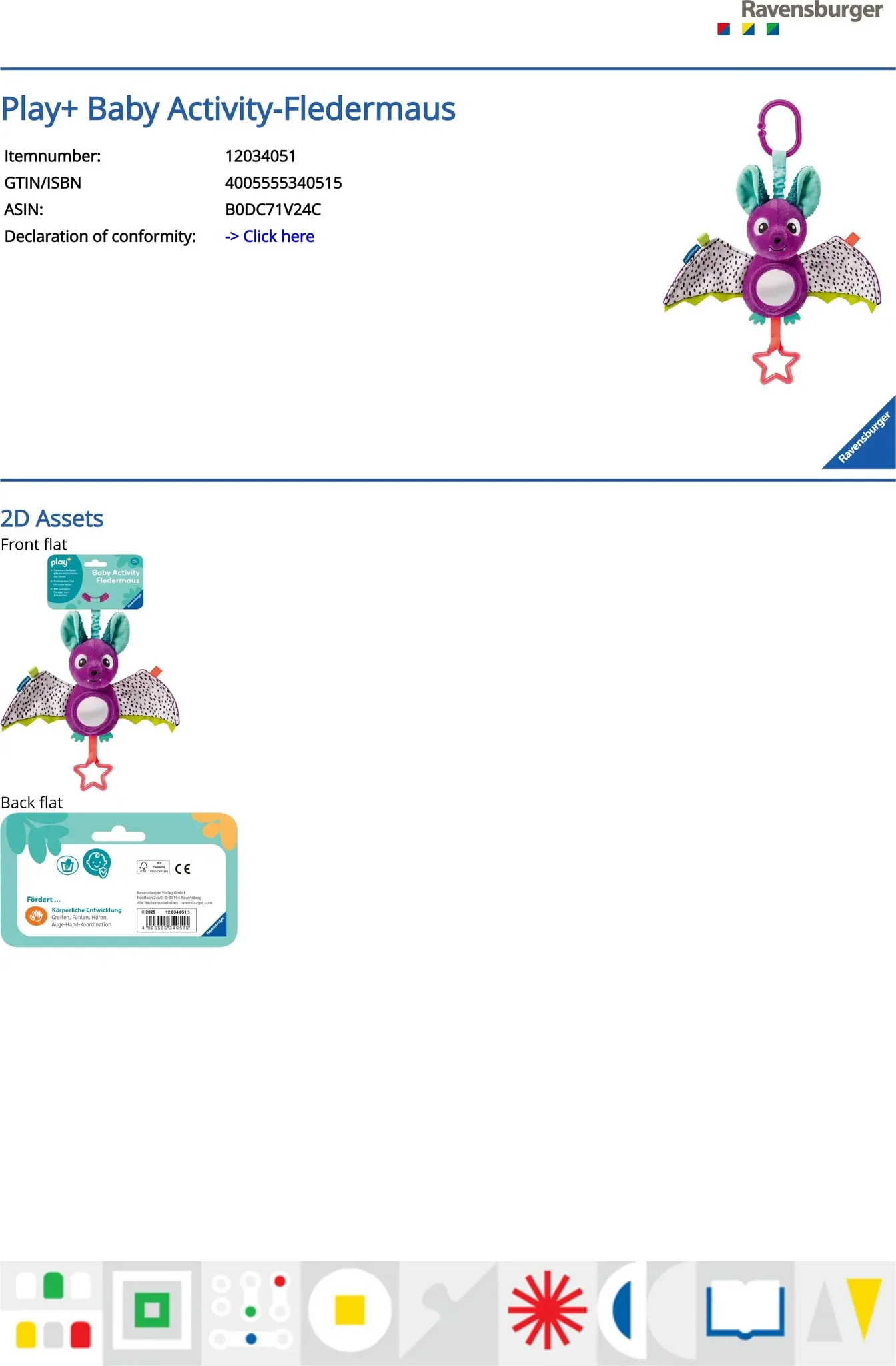 Produktinformationen "Baby Activity-Fledermaus – Kuschelspielzeug mit Spielelementen"