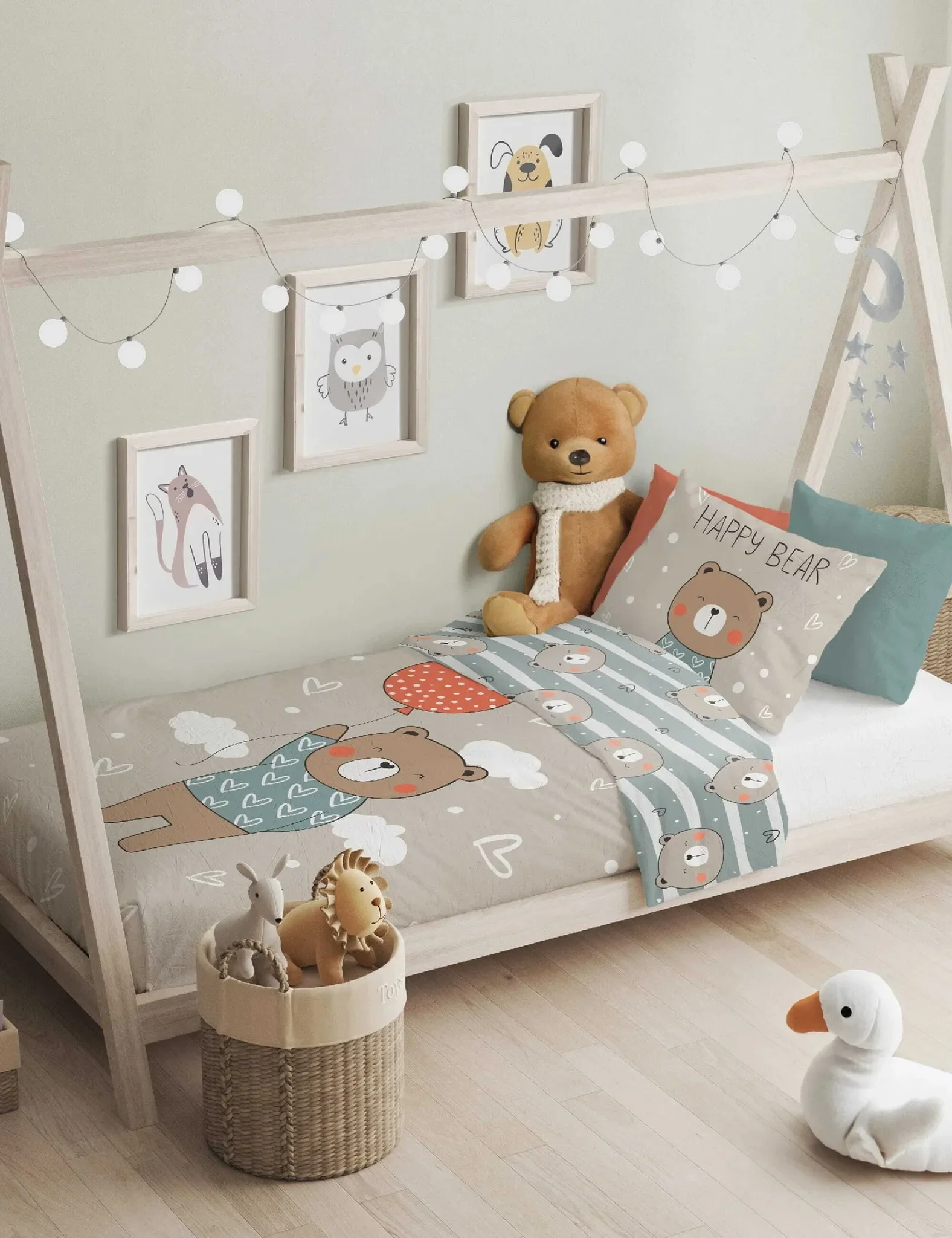 Babybettwäsche 2-teilig – 100 × 135 cm, Motiv „Happy Bear“