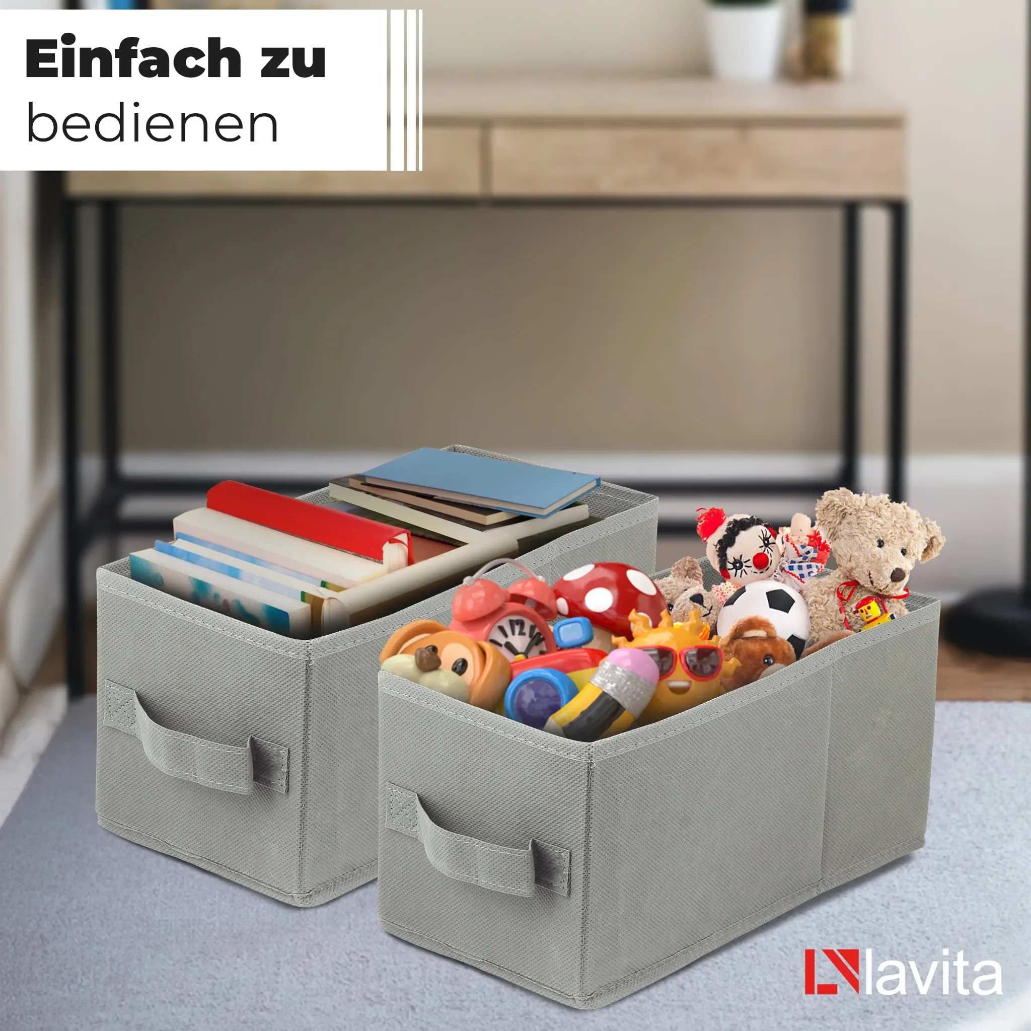 Das schlichte Design in Dunkelgrau fügt sich harmonisch in nahezu jedes Wohnkonzept ein. Dank des stabilen Stoffgriffs lässt sich die Box leicht herausziehen oder transportieren. Bei Nichtgebrauch kann sie flach zusammengefaltet und platzsparend verstaut werden.