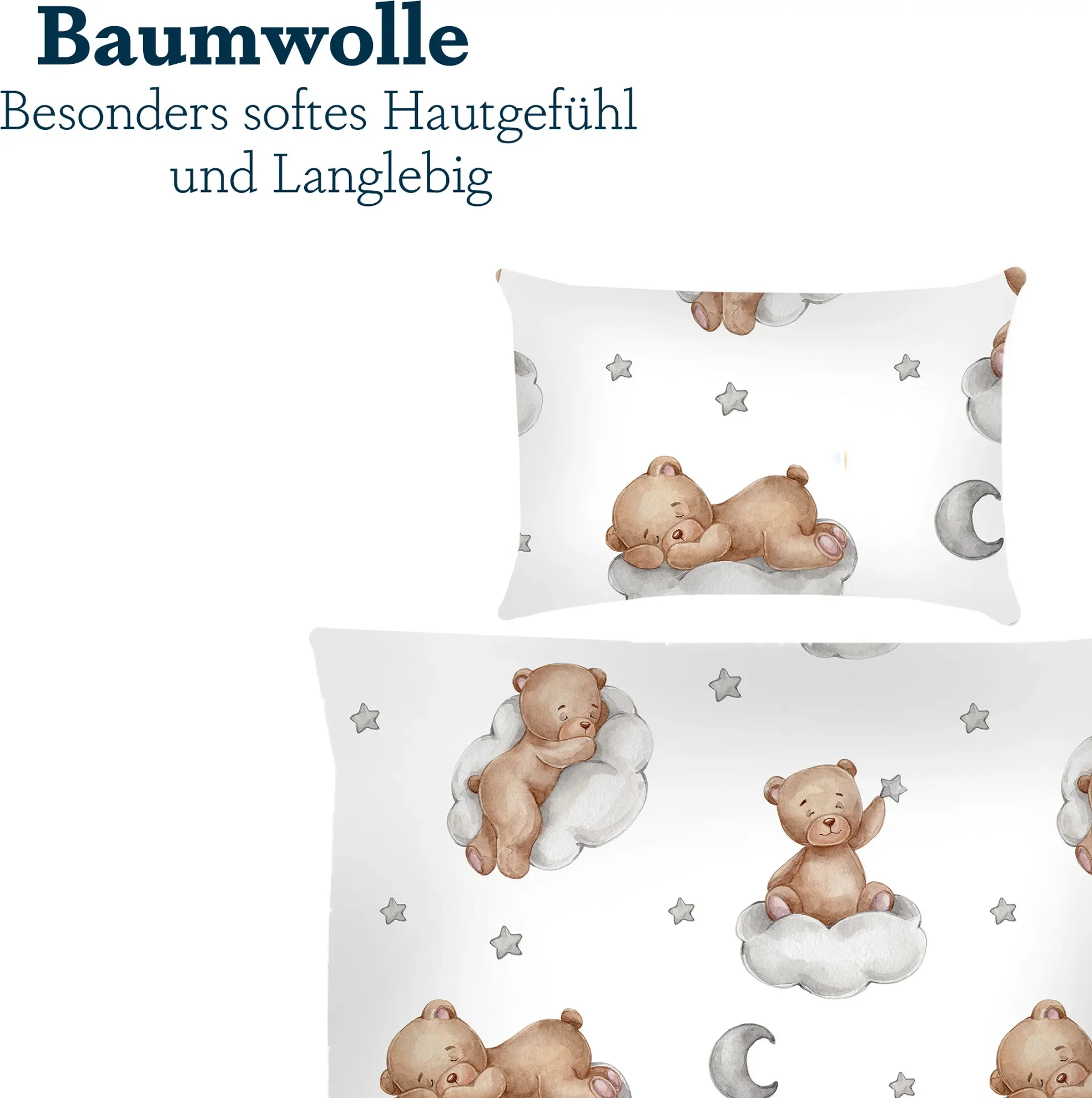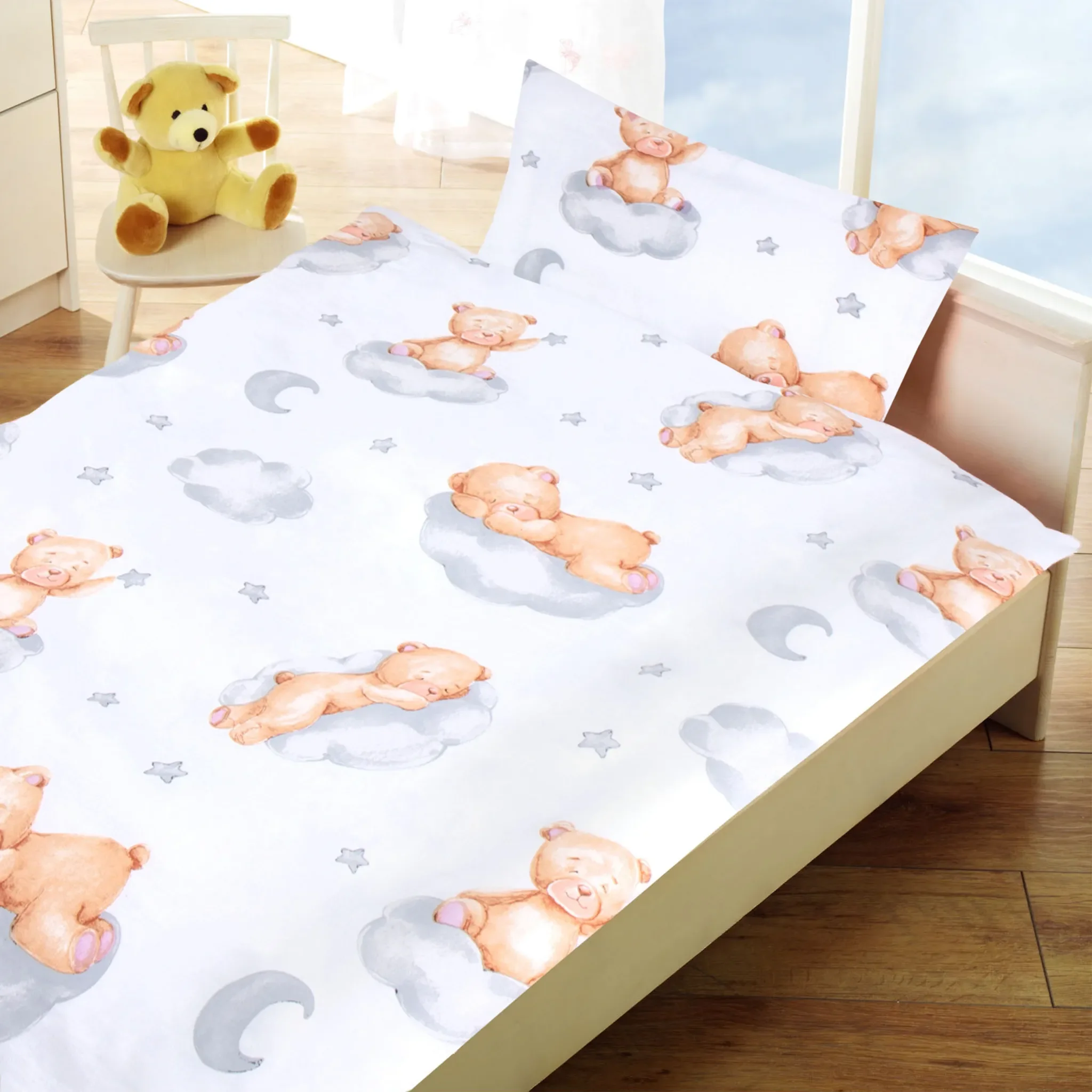Kinderbettwäsche 2-teilig – 100 × 135 cm, Motiv „Bärchen & Wolke“