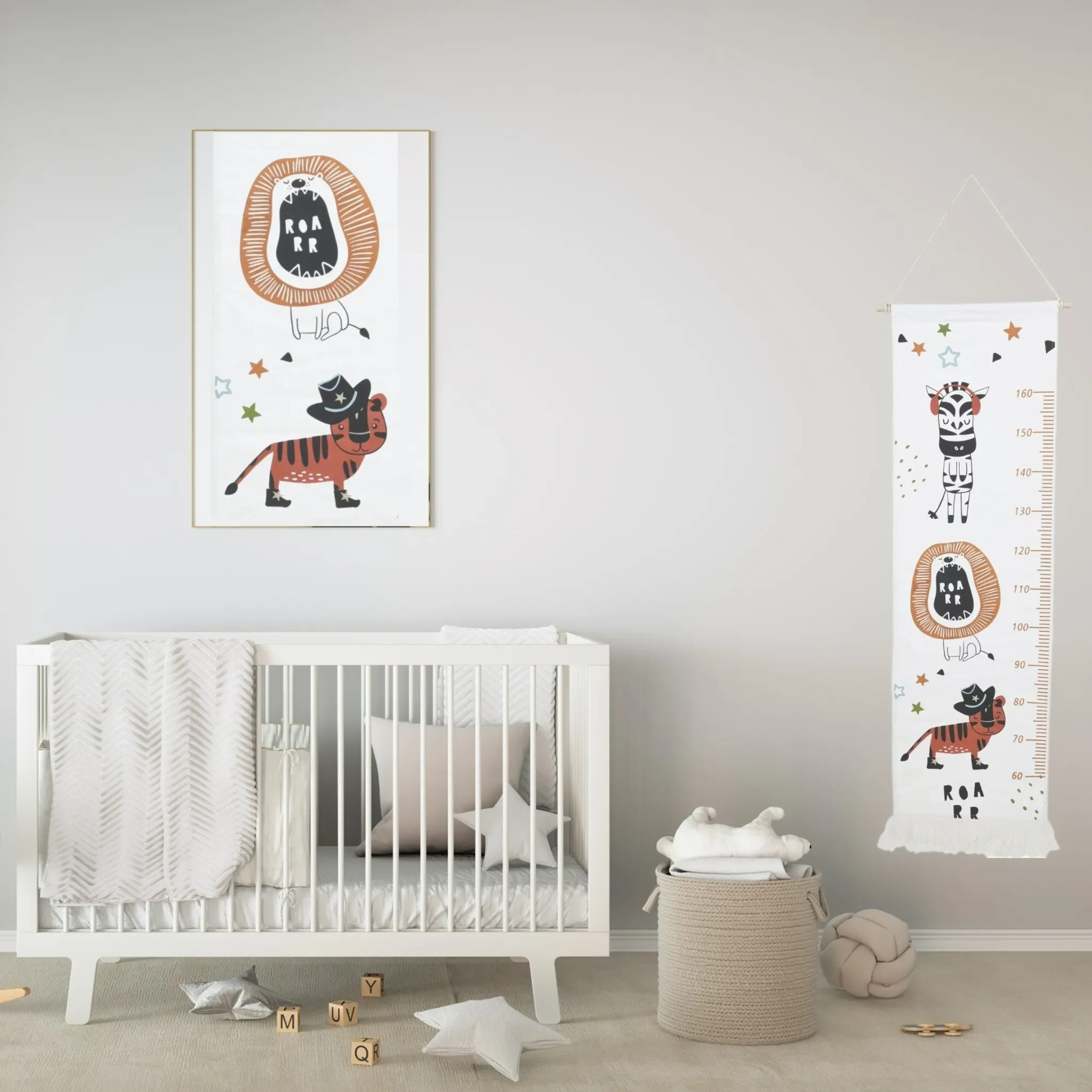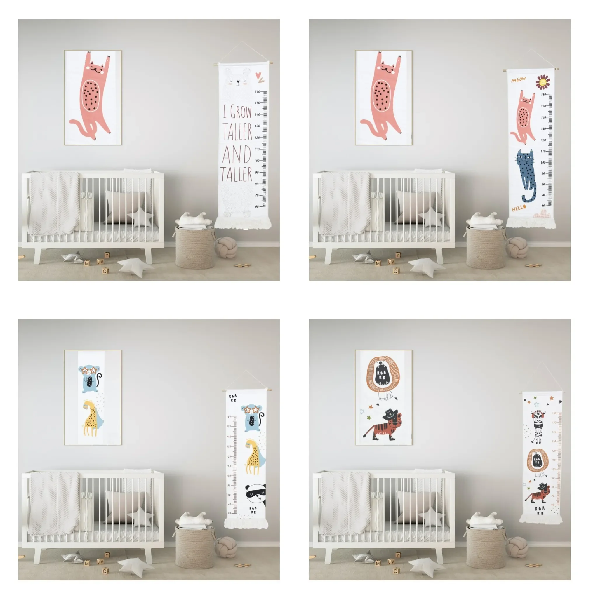 Diese dekorative Messlatte aus robustem Canvas ist eine stilvolle Möglichkeit, das Wachstum Ihres Kindes festzuhalten. Als Wandteppich gestaltet, verbindet sie Funktionalität mit einer liebevollen Kinderzimmer-Dekoration und wird so zu einer bleibenden Erinnerung.