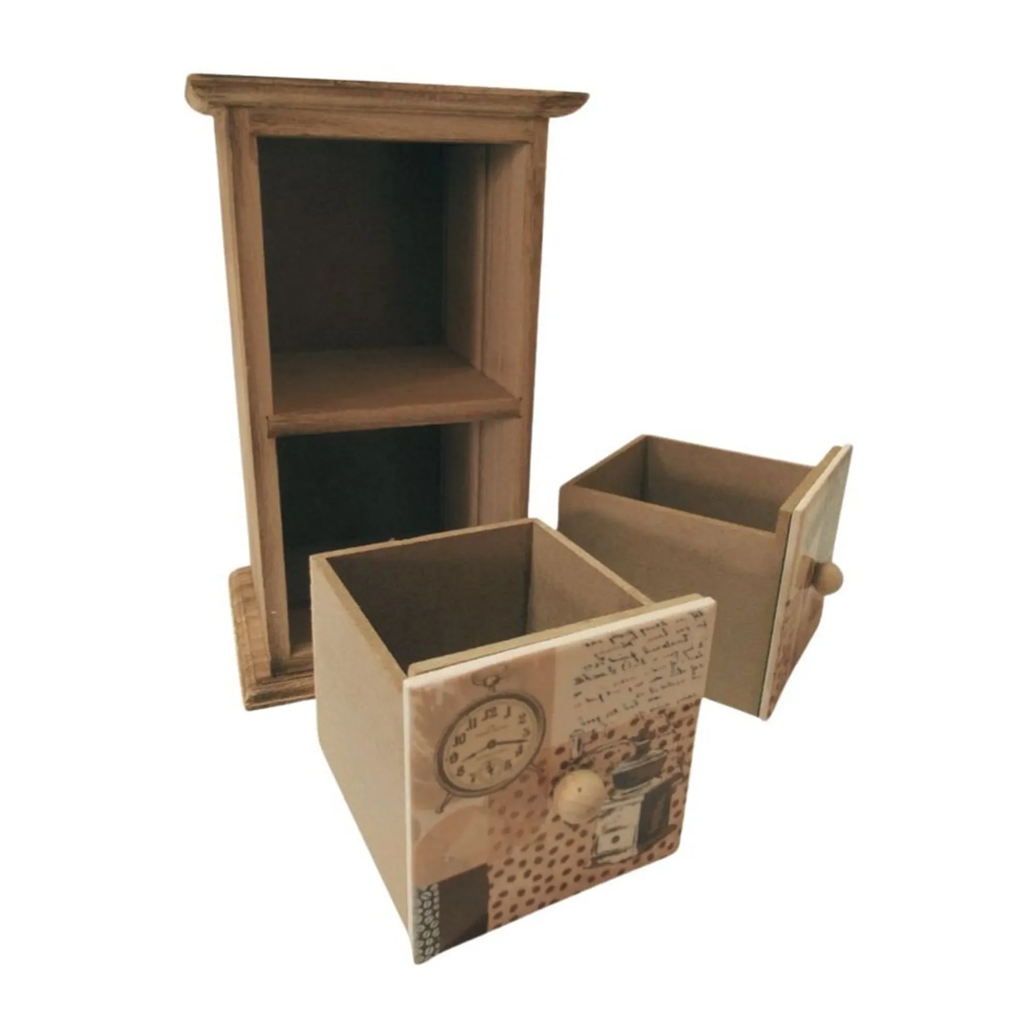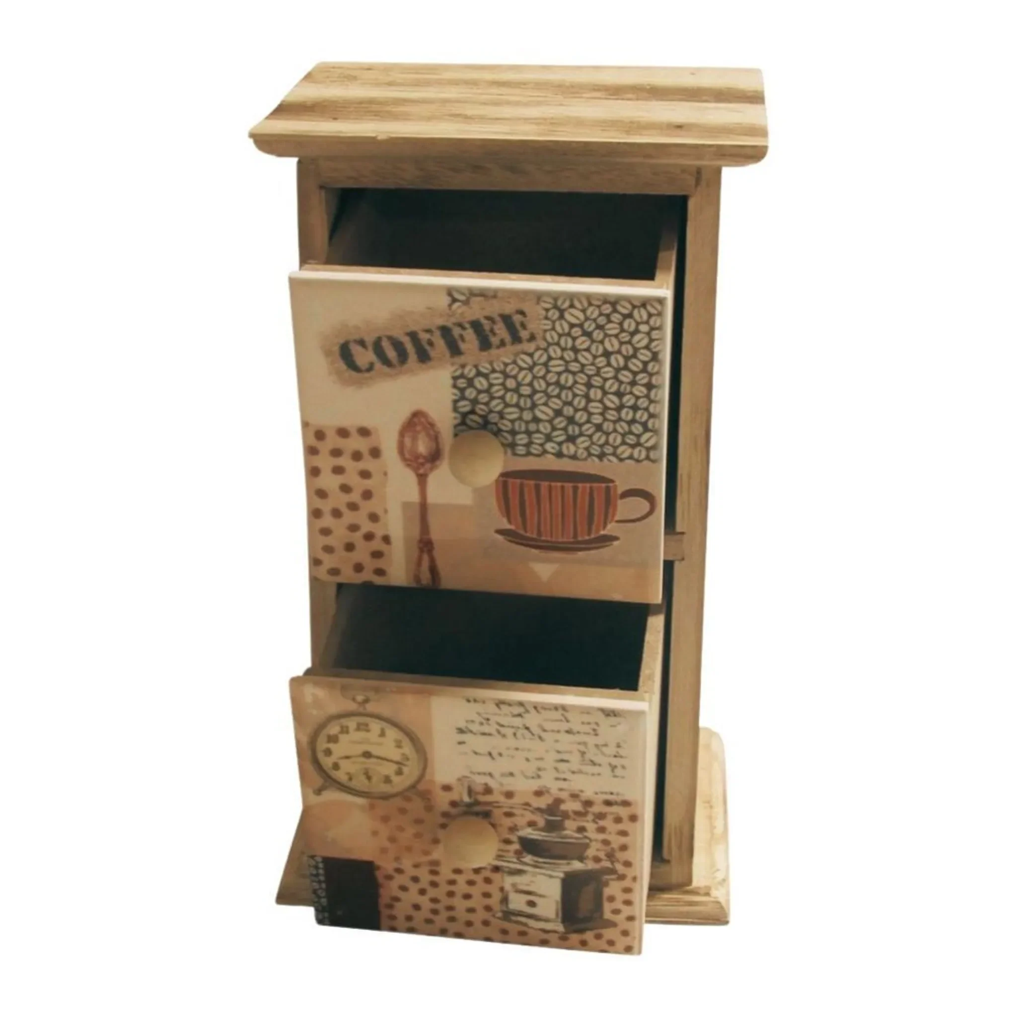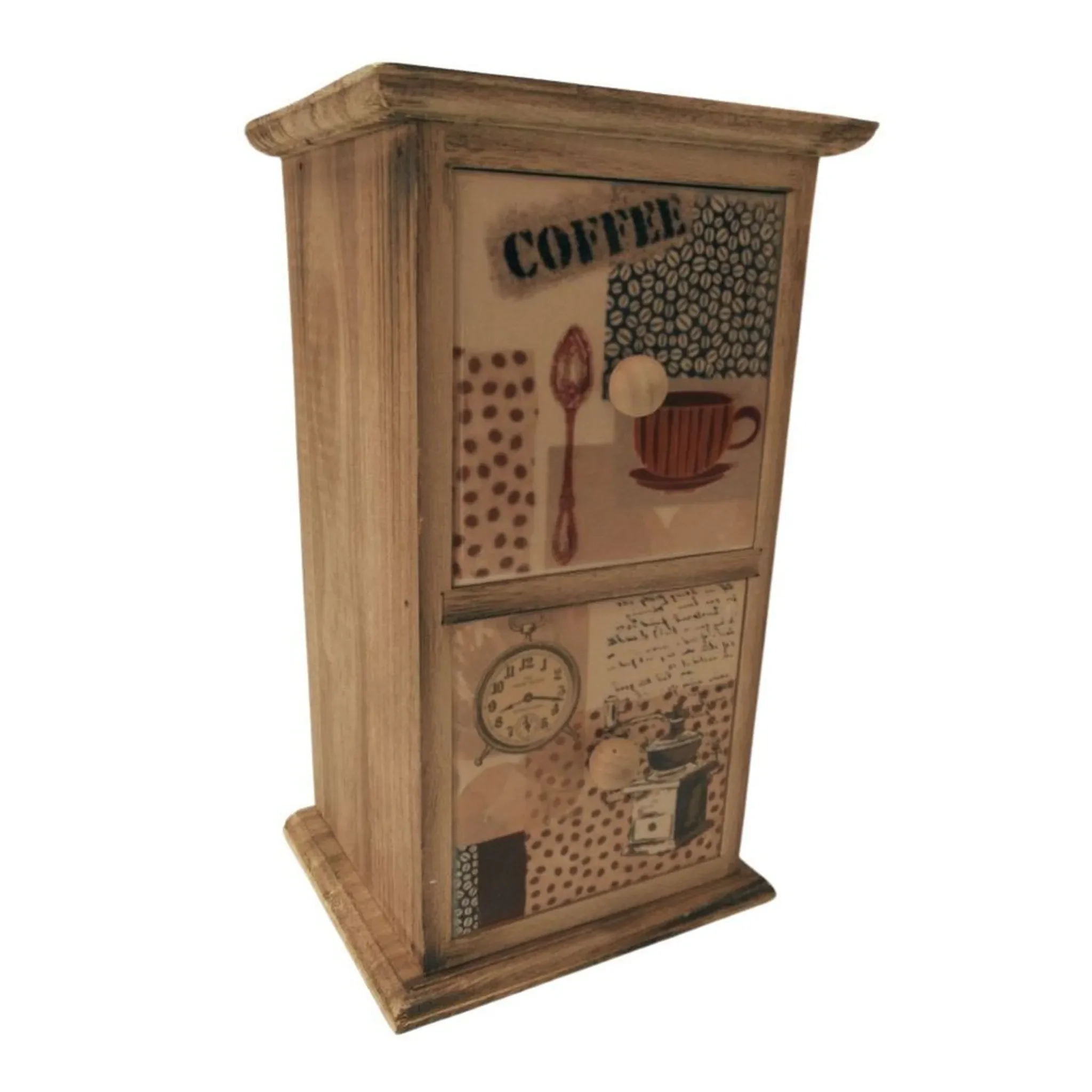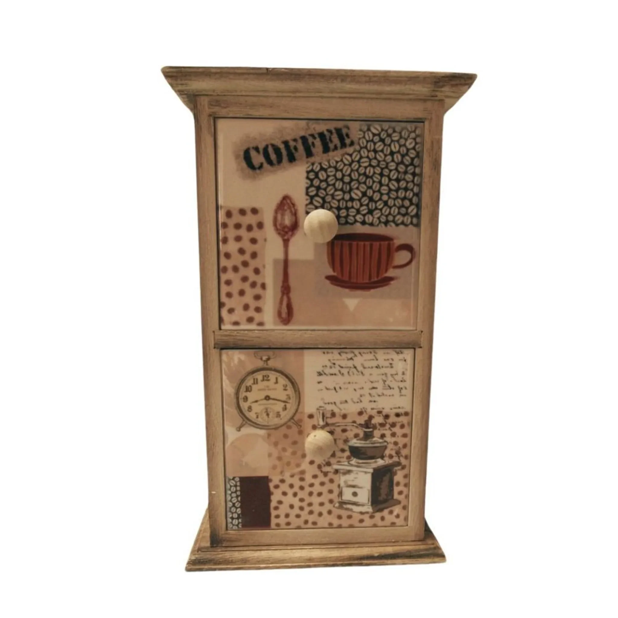 Dieses charmante Mini-Schubladenschränkchen von LOCKER vereint rustikale Ästhetik mit praktischer Funktion. Gefertigt aus hochwertigem Balsa-Holz, ist es mit zwei auffälligen Keramik-Fliesen im Kaffee-Design verziert – ein echter Hingucker im Landhaus-Stil.