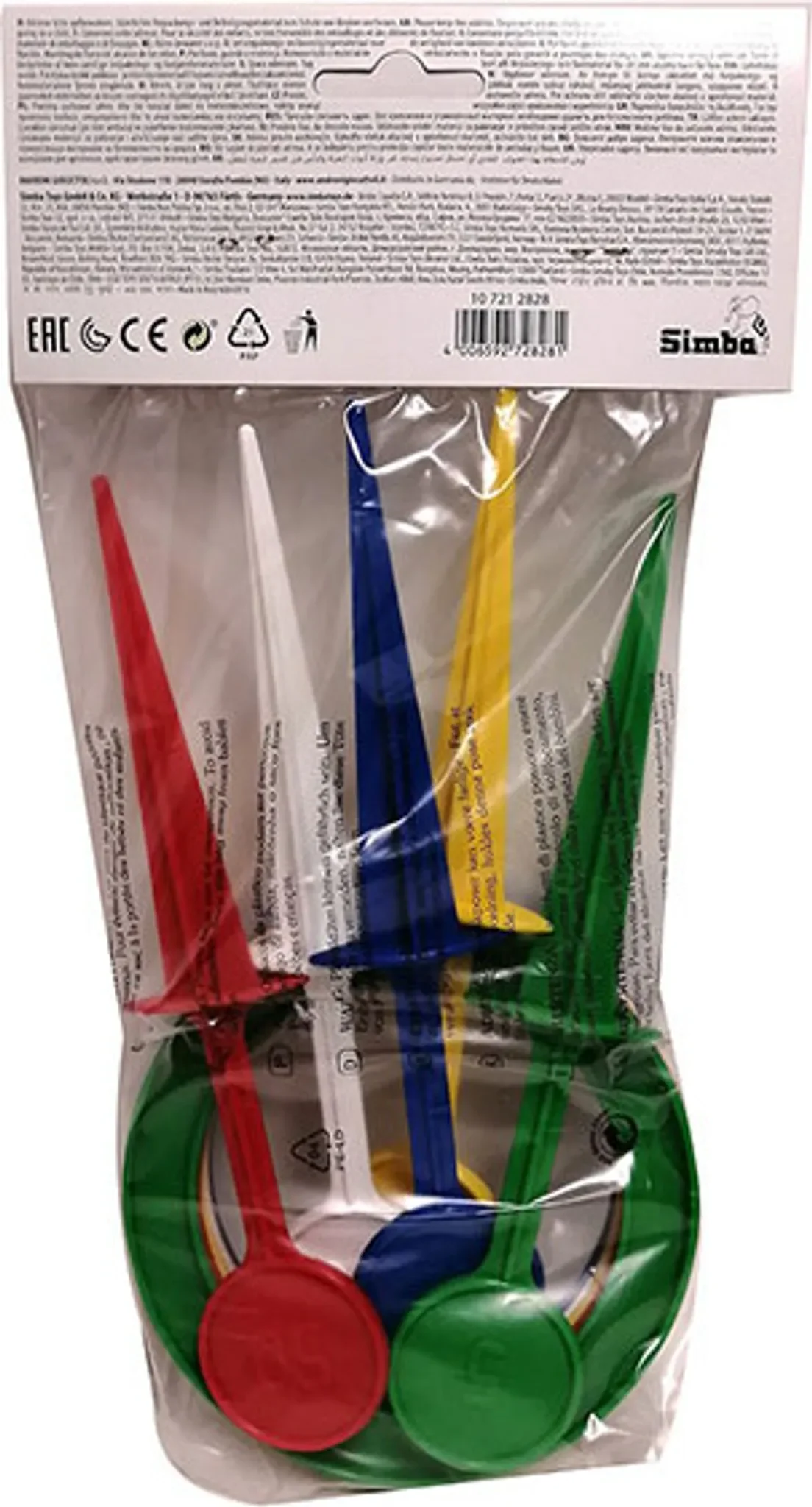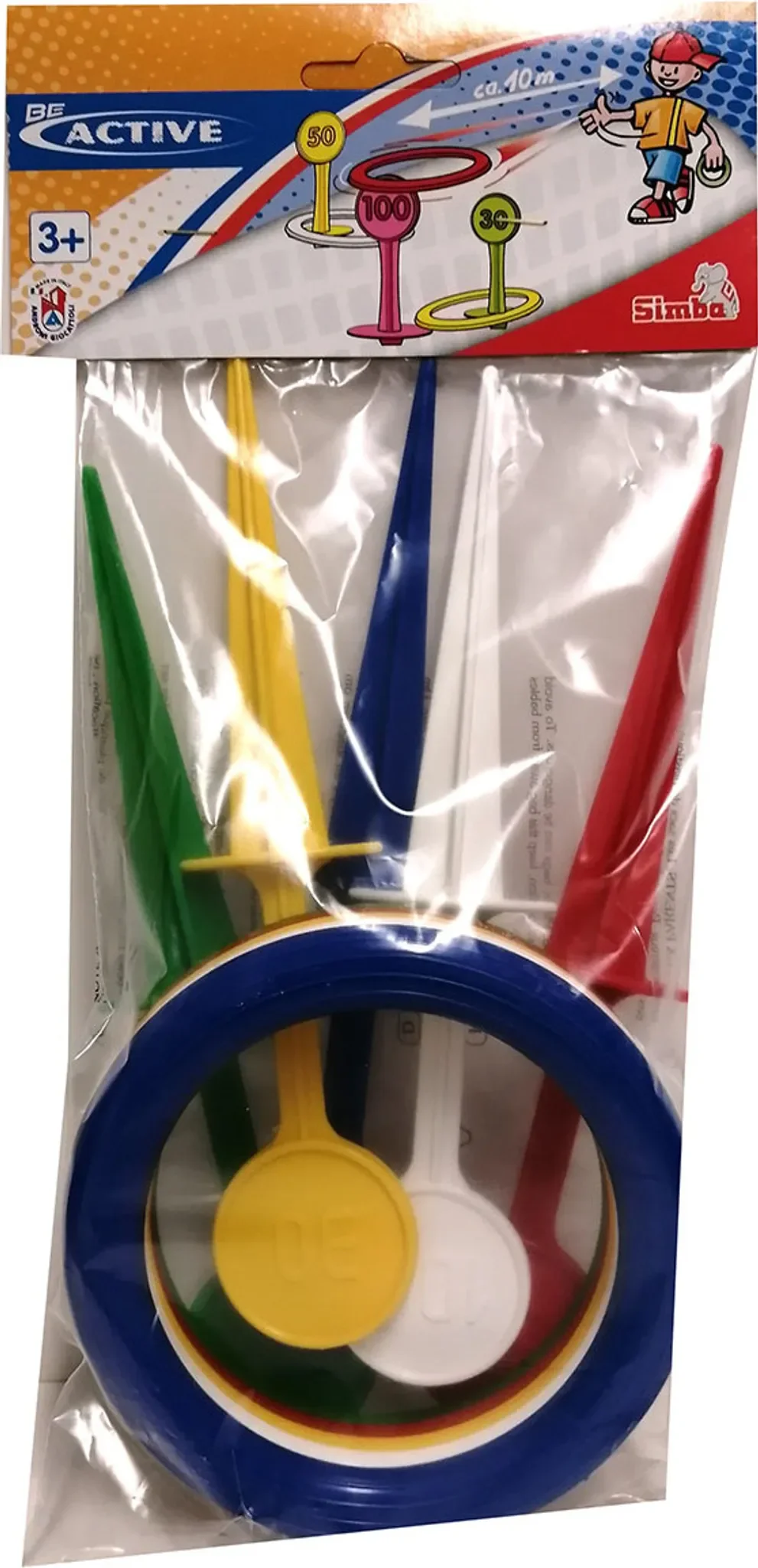 Das Ringwurfspiel von Simba sorgt für jede Menge Bewegung, Spannung und Spaß an der frischen Luft. Einfach die fünf farbigen Bodenstecker in die Erde stecken, eine Wurfdistanz festlegen und schon kann die Wurf-Meisterschaft beginnen. Ziel ist es, die Ringe möglichst treffsicher über die Stecker zu werfen.