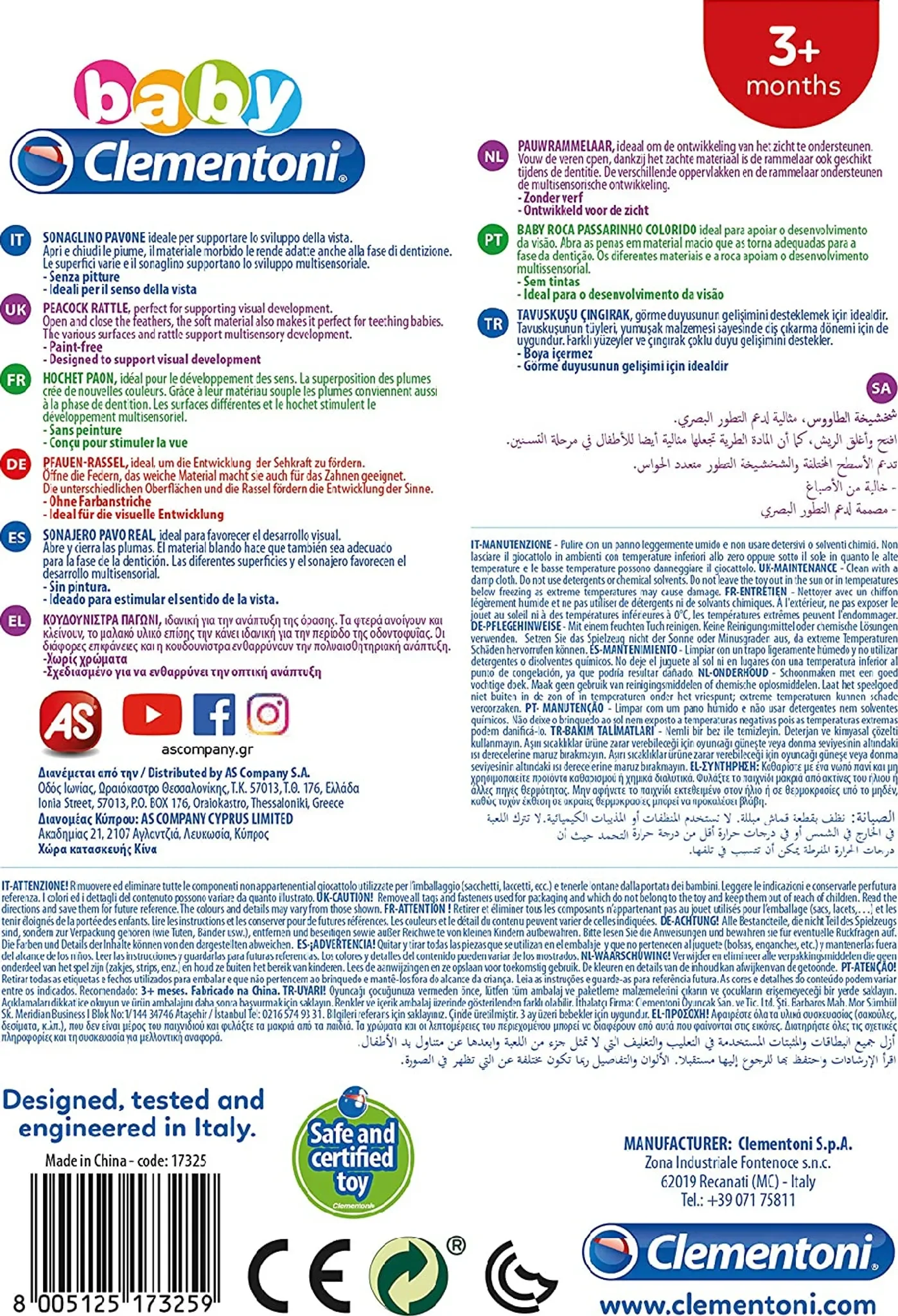 Highlights: Bewegliche Pfauenfedern, vielfältige Oberflächen, fördert visuelle & taktile Wahrnehmung, auch als Beißhilfe geeignet, sicher und kindgerecht verarbeitet.