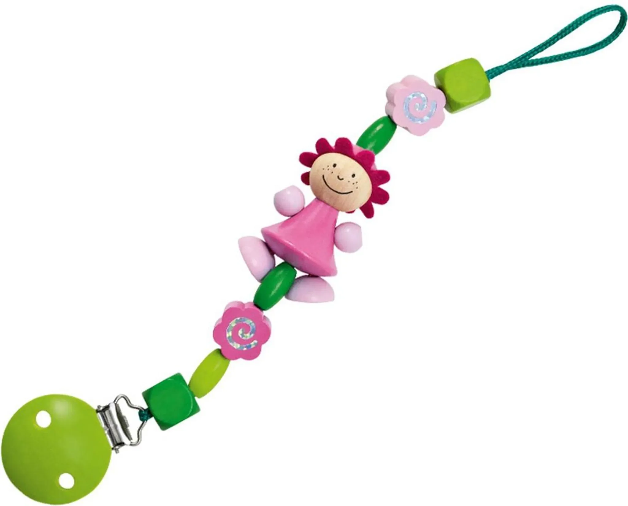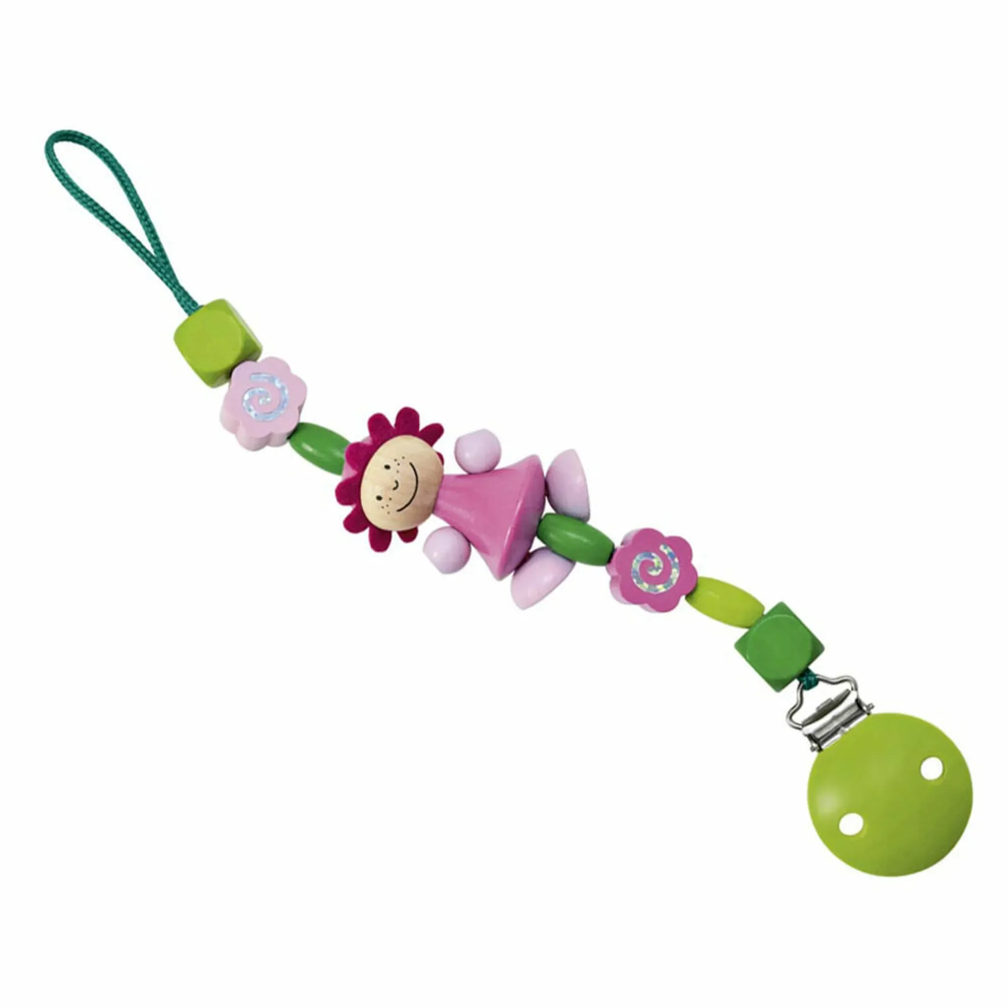 Die Schnullerkette „Rosali“ aus Holz hält den Schnuller zuverlässig in Reichweite – zu Hause wie unterwegs. Das liebevoll gestaltete, kindgerechte Design sorgt für einen sanften Blickfang und begleitet Babys beruhigend durch den Alltag.